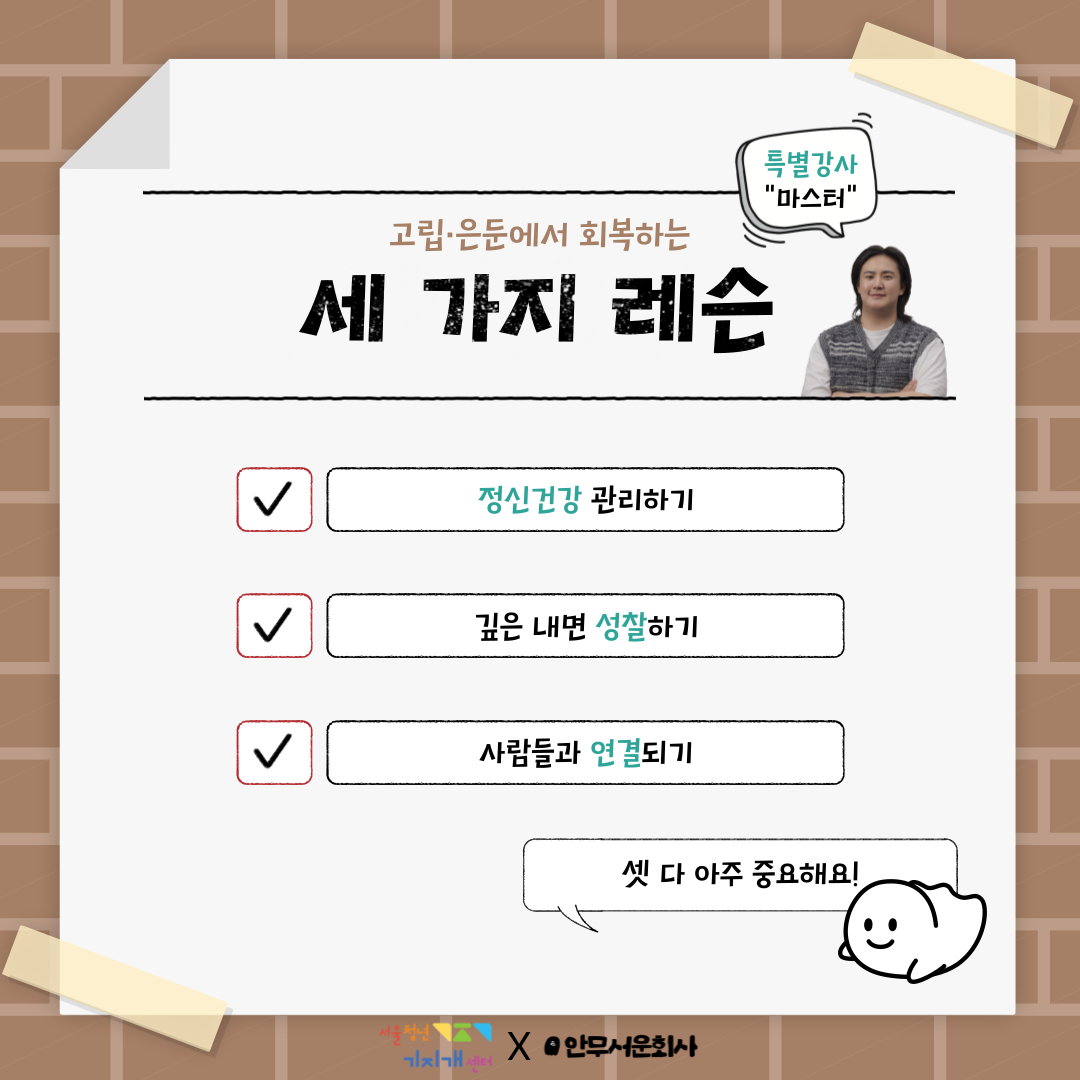 이 워크숍은 '재은둔'이 두려운 분들을 위해 진행됩니다.